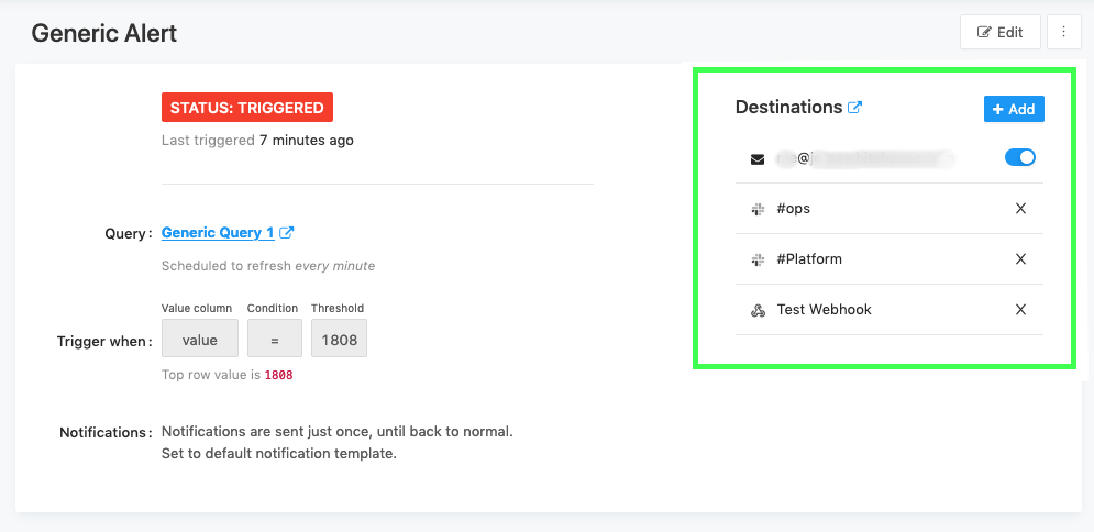 When you’re finished, click Create Alert and then choose an Alert Destination. If you skip this step you will not be notified when the alert is triggered.