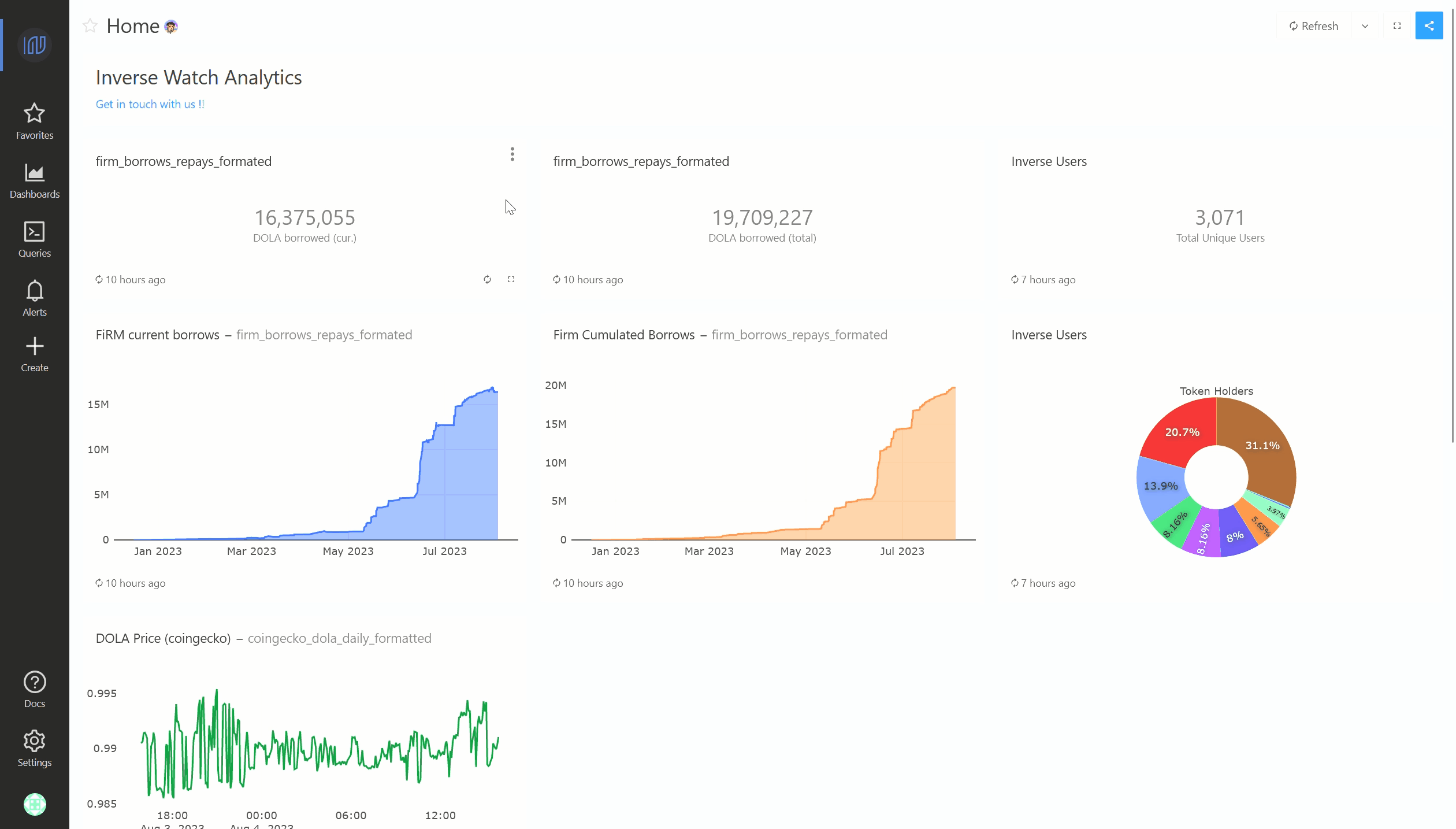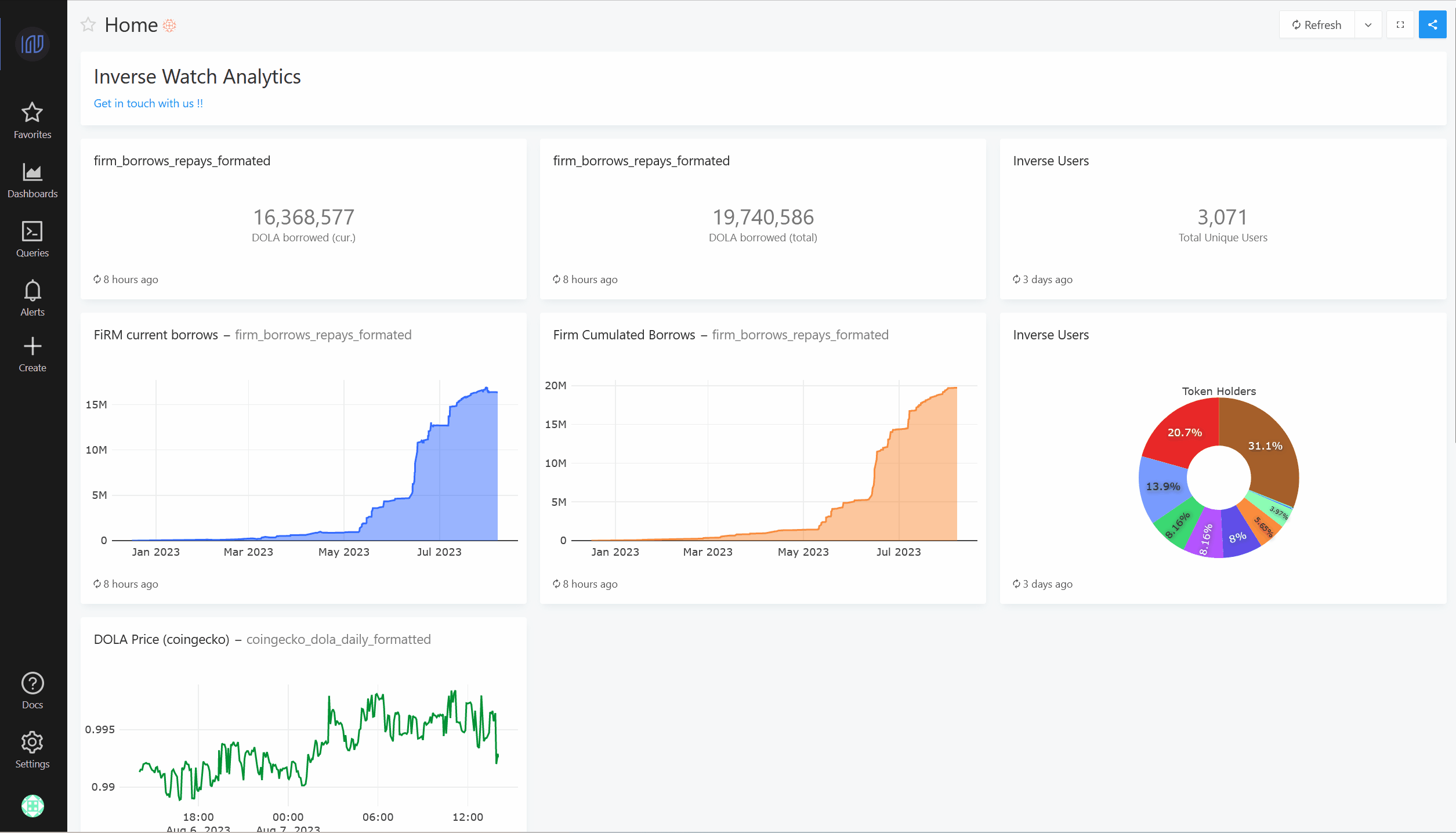 You can combine visualizations and text into thematic & powerful dashboards. Add a new dashboard by clicking on “Create” in the navigation bar, and then choose “Dashboard”. Dashboards are visible for your team members or they can be shared publicly. For more details, [click here](https://docs.inverse.watch/user-guide/dashboards/creating-and-editing-dashboards).
