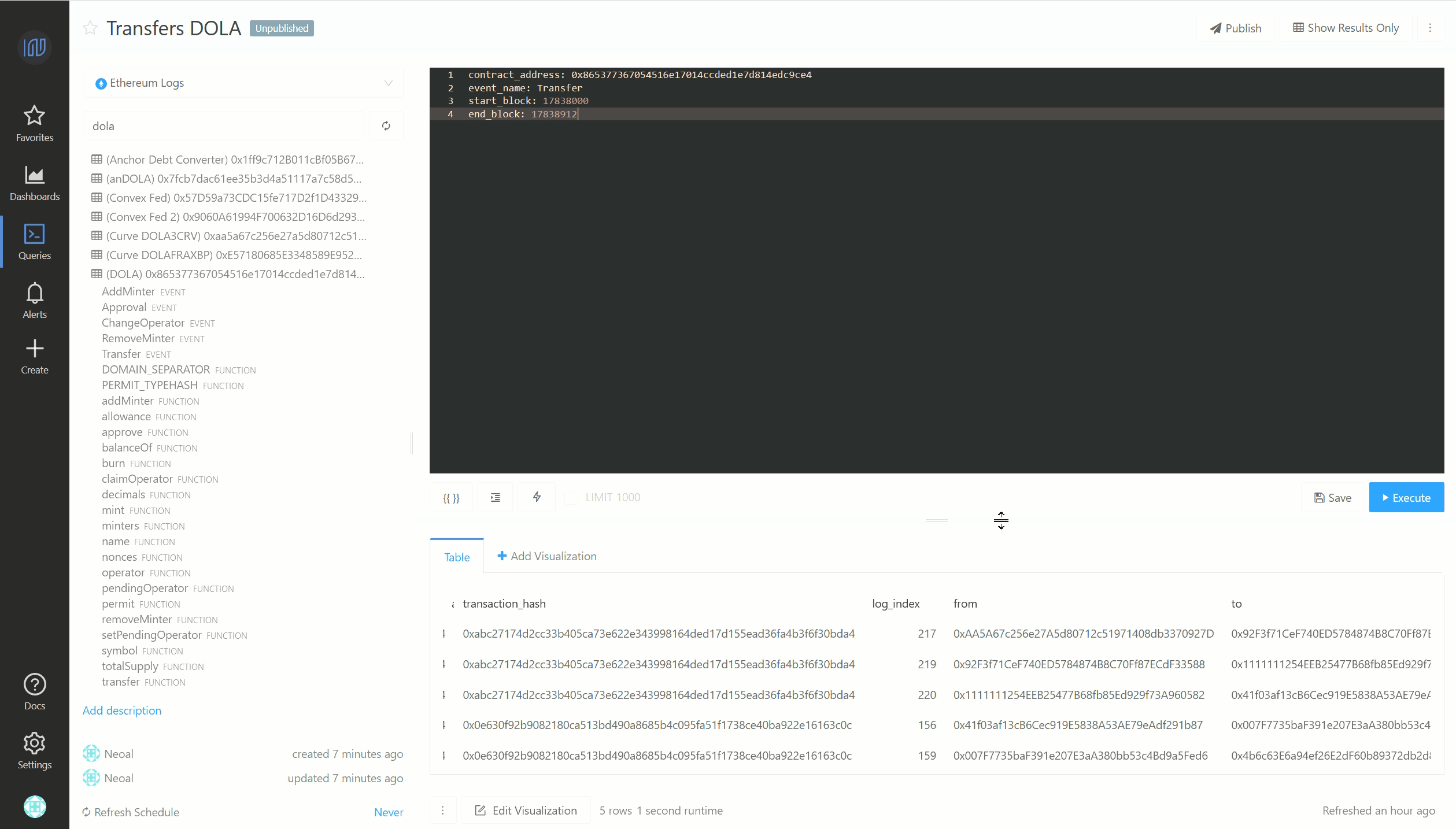 By default, your query results (data) will appear in a simple table. Visualizations are much better to help you digest complex information, so let’s visualize your data. The application supports [multiple types of visualizations](https://docs.inverse.watch/user-guide/visualizations/visualizations-types) so you should find one that suits your needs.