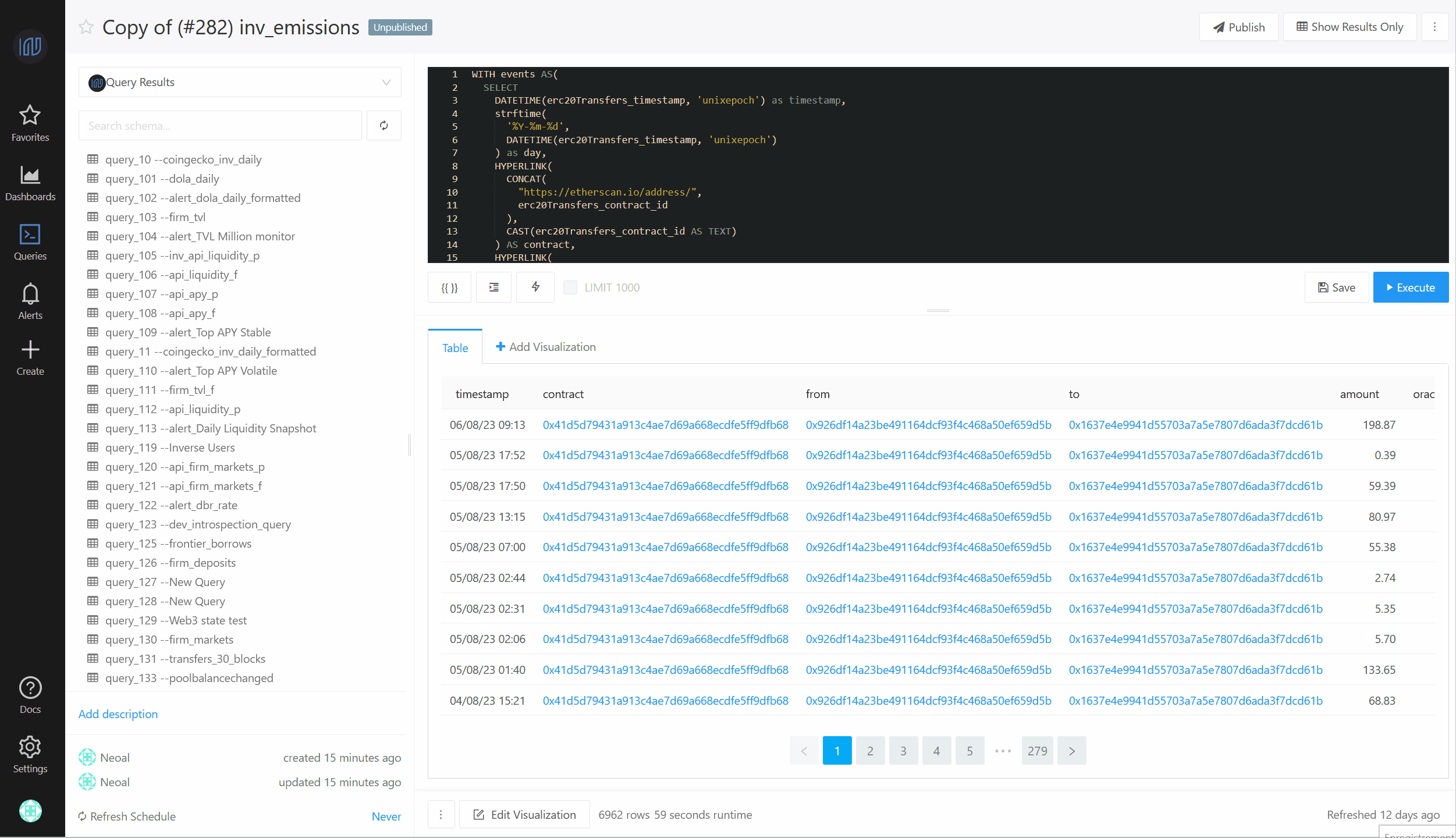 Once you have run your query, you will receive your table. You can adjust the table's visualization as needed.